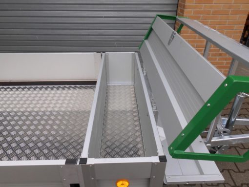 | Bordwände | ALU eloxiert mit verdeckten Verschlüssen, Klappe hinten abnehmbar, 350 mm hoch |